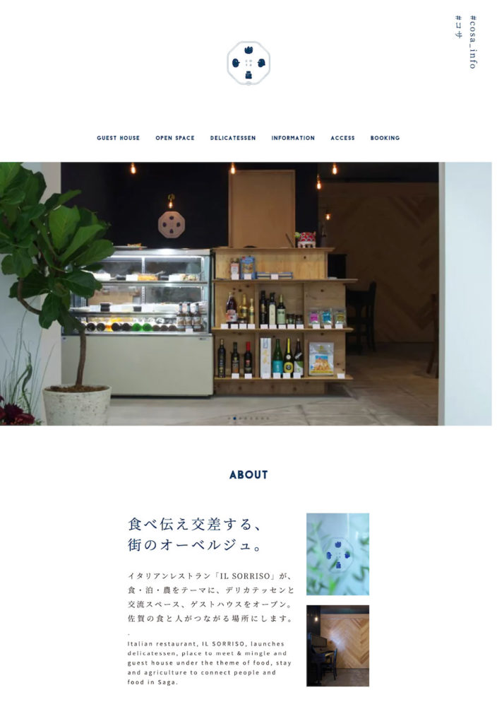 佐賀県佐賀市にオープンしたデリカテッセンと交流スペース、ゲストハウスを営む cosaのウェブサイト制作をお手伝いしました。